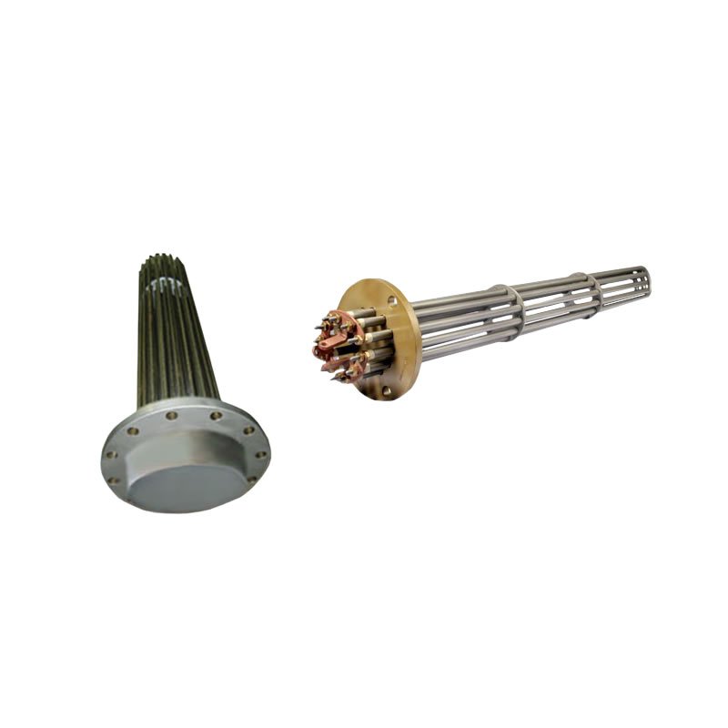 As resistências flangeadas são confeccionadas em tubos de aço inox AISI 304 – 316L ou cobre. São utilizadas em diversos serviços de soluções alcalinas, ácidos, gases, lubrificantes e água. Aplicações em tanques e aquecedores de passagem.